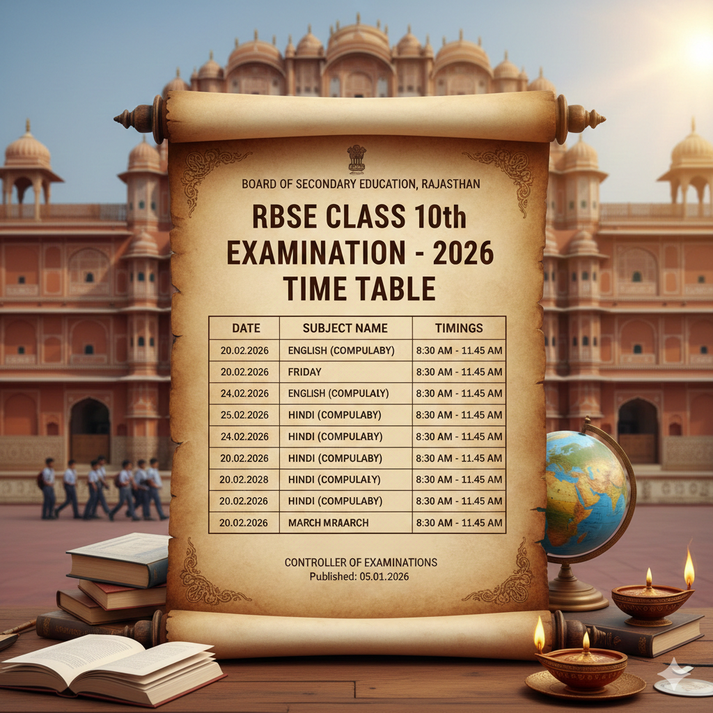 अगर आप भी RBSE Class 10th Exam Date 2026, विषयवार परीक्षा तिथि, टाइमिंग, या RBSE 10th Time Table 2026 PDF Download की जानकारी ढूंढ रहे हैं, तो यह पोस्ट आपके लिए पूरी तरह उपयोगी है।